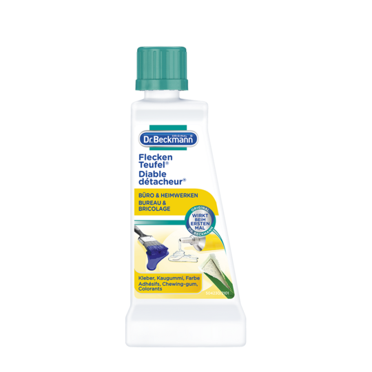 Le Diable détacheur Bureau & Bricolage est parfaitement adapté aux propriétés de taches qui adhèrent fortement. La formule qui possède une fonction dissolvante extra forte pénètre dans le tissu et dissout la tache. Cela est vrai aussi bien pour les taches de chewing-gum que pour les taches de colle ou de vernis à ongles ainsi que bien d'autres taches.