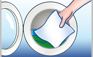 La lingette encore humide peut immédiatement être réutilisée pour la lessive suivante.